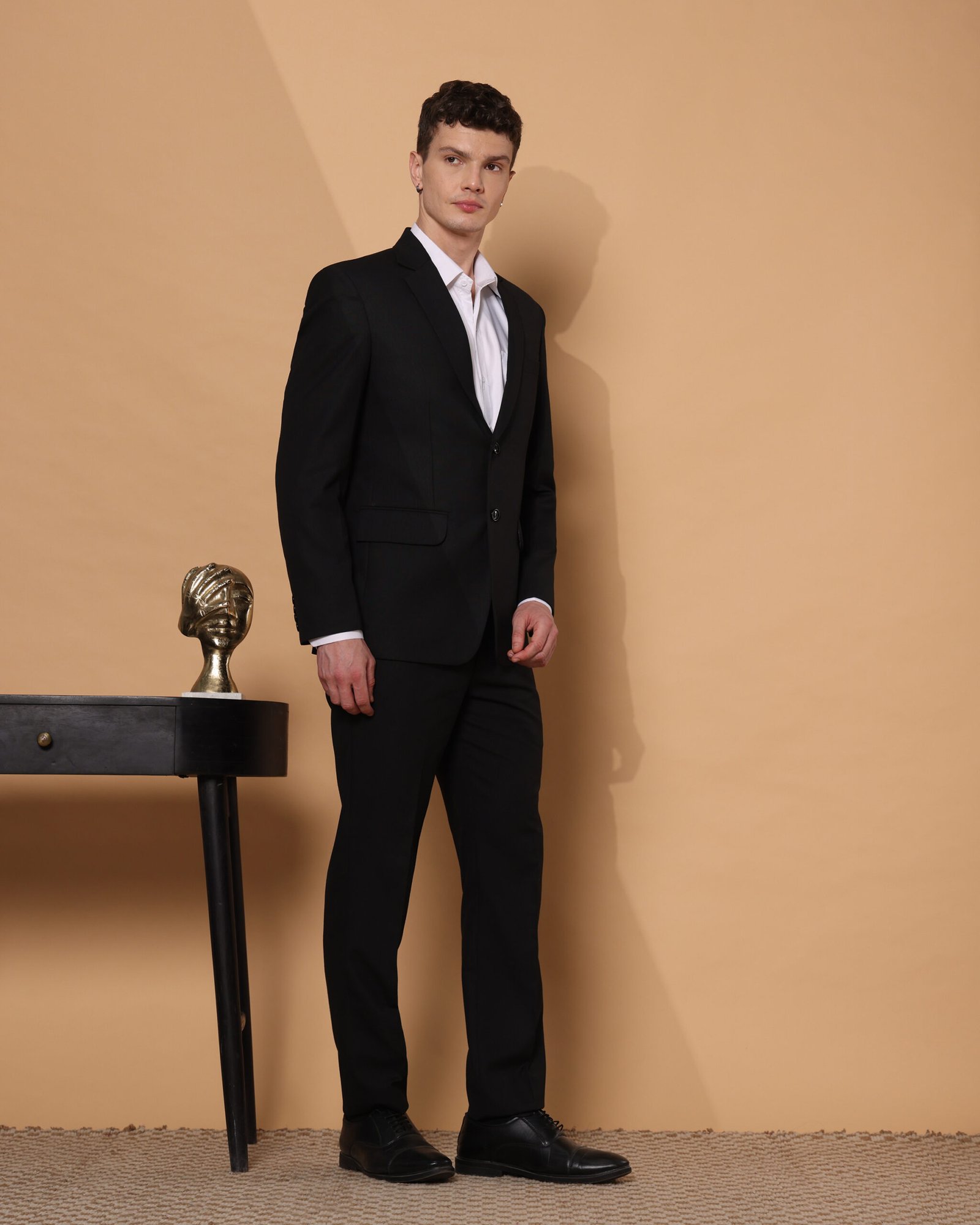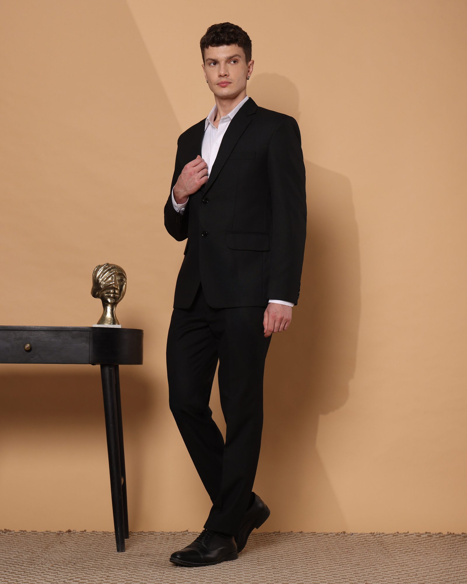 The rich black shade offers supreme versatility—it pairs perfectly with a crisp white shirt for an iconic, sharp contrast, or can be accessorized with dark ties for a sleek monochrome finish. An essential investment for every gentleman’s wardrobe, this suit is designed to be worn for years to come.