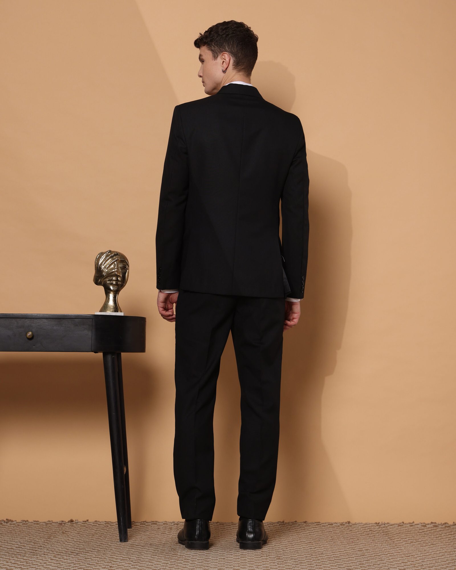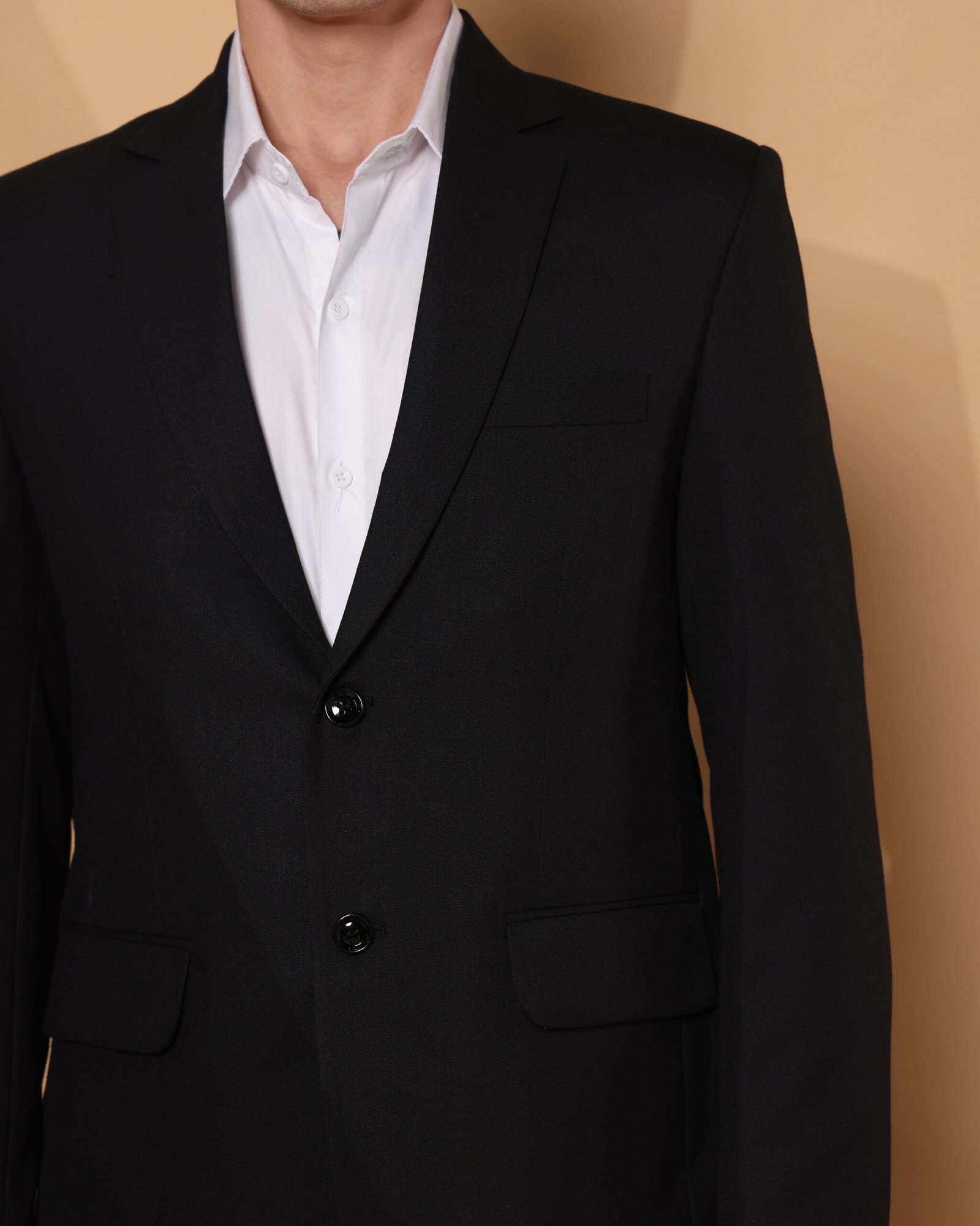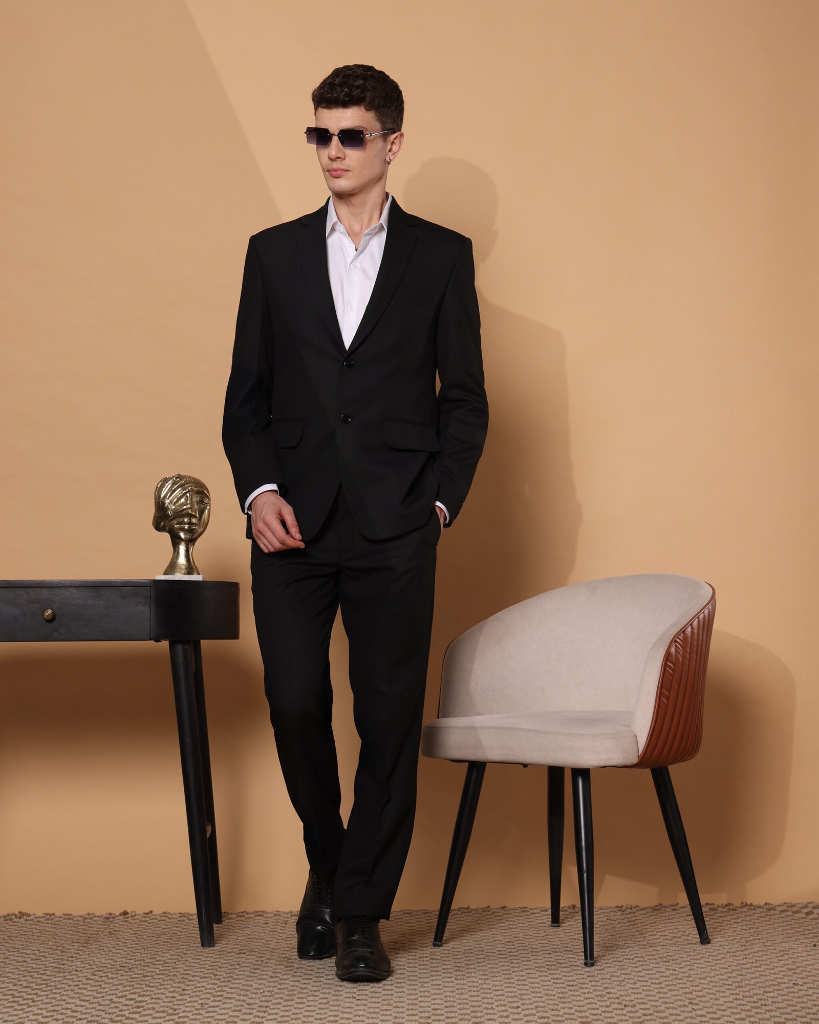 Command attention with our Classic Jet Black Two-Piece Suit, the ultimate foundation for every formal event. This timeless suit is expertly tailored to deliver a sharp, contemporary silhouette, ensuring you look polished for black-tie optional events, weddings, galas, and important business engagements.